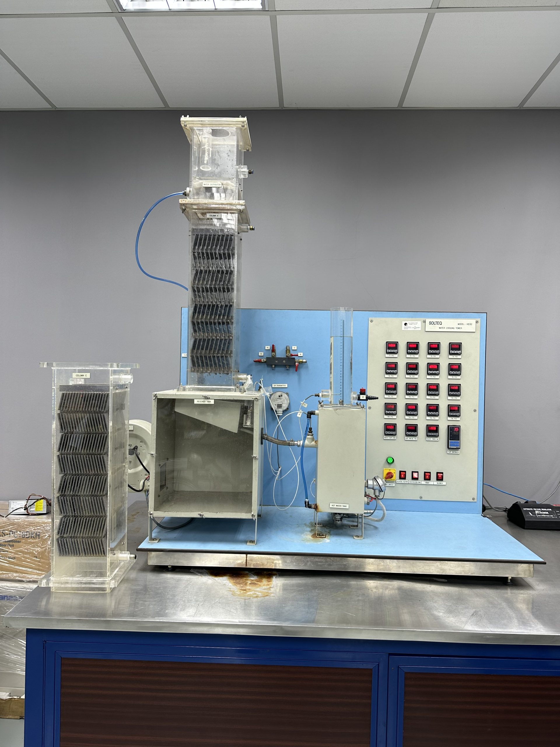 A miniature of a cooling tower designed to allow students to learn about the processes related to industrial force draught cooling tower.