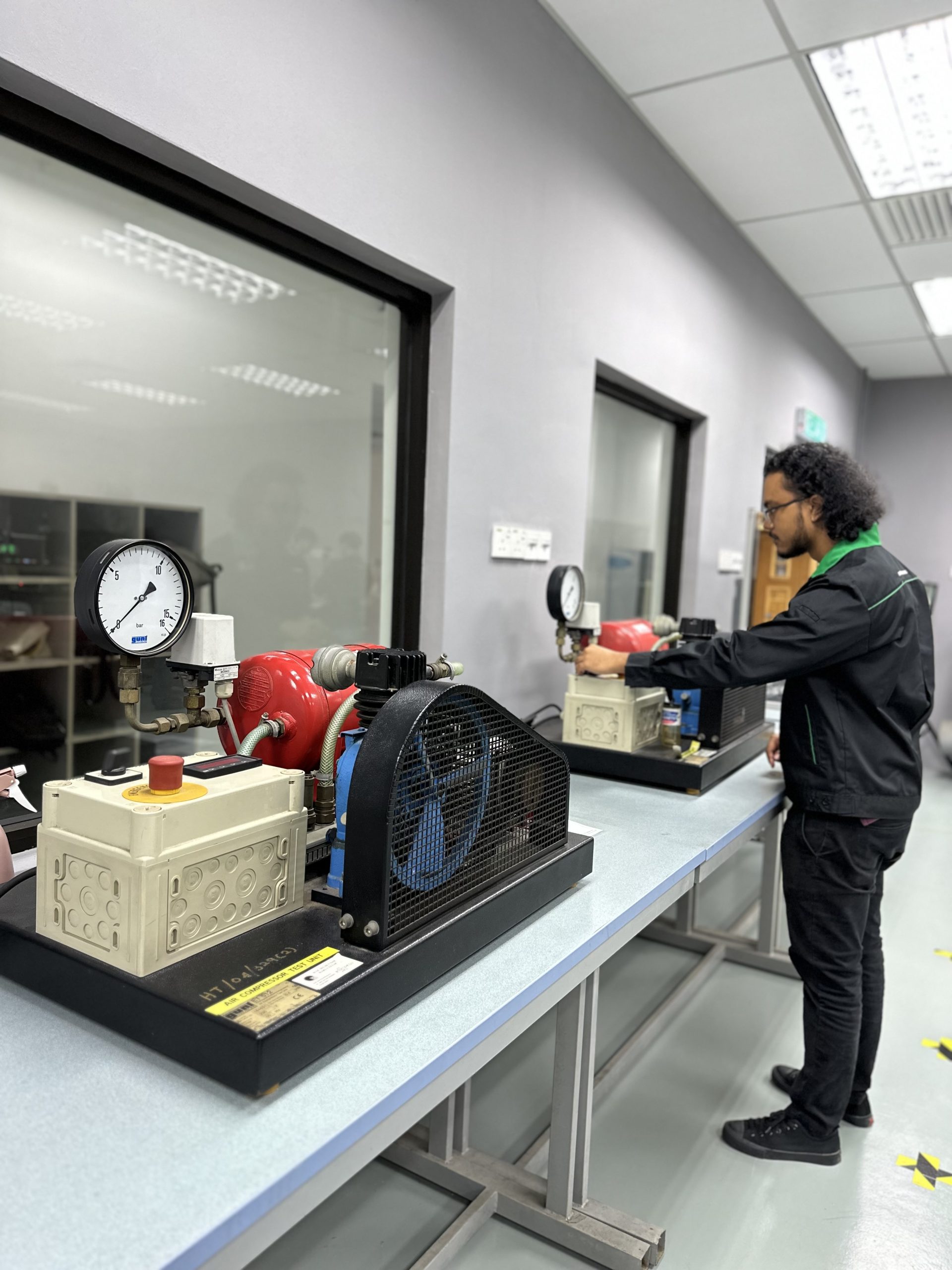 – familiarisation with a compressed air generator and its components
